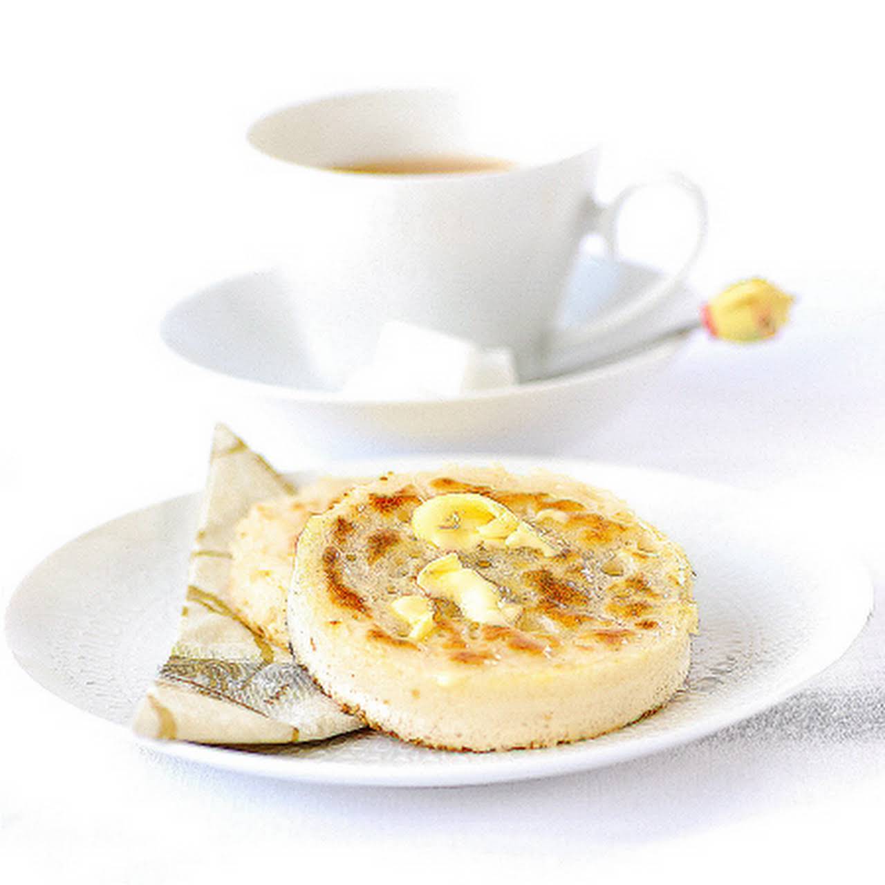 English Crumpets once Plain Flour, Salt, Sugar, Yeast, Milk, Warm Water, Vegetable Oil, Crumpet