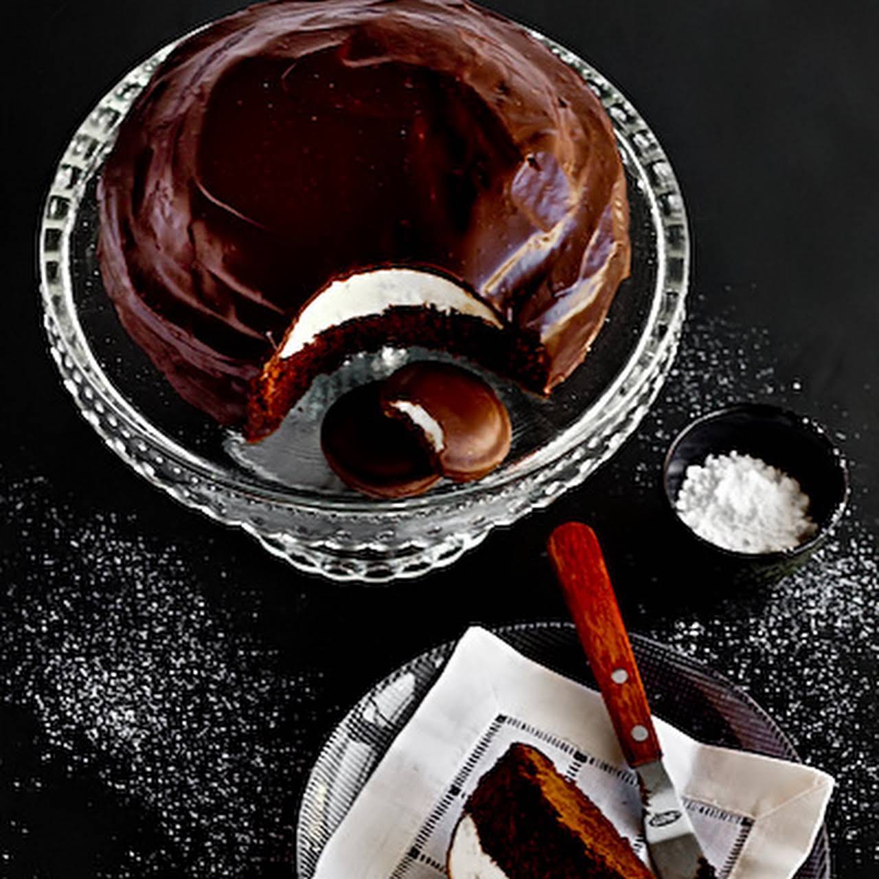 Mint Slice Cake later Large Eggs, Caster Sugar, Cornflour, Dutch Process Cocoa, Plain Flour, Cream Of Tartar, Soda, Unsalted Butter, Butter, Icing Sugar, Milk, Essence, Cream, Dark Chocolate