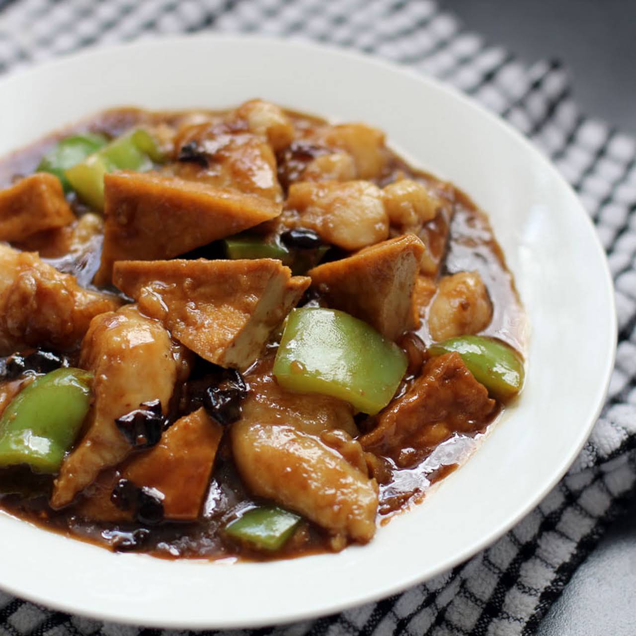 Fish In Black Bean Sauce similar to Fish Fillet, Tofu, Capsicum, Black Beans, Black Bean Sauce, Soy Sauce, Water, Cornstarch, Garlic, Ginger, Shallot, Fish Sauce, pitch Black Pepper, Oil