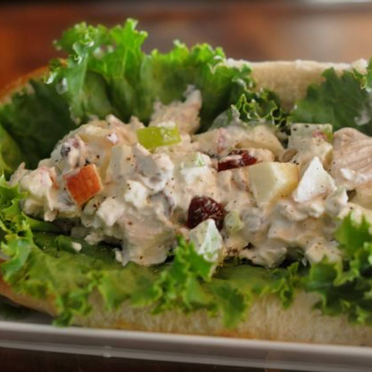 Subway Orchard Chicken Salad like Cooked Chicken Breast, Red Apple, Granny Smith Apple, Chopped Celery, Cherry Juice, lively Mayonnaise, Salt, Pepper